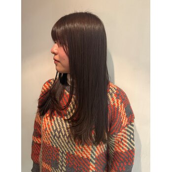 ヘアカラーの王道、ブラウンカラーも少し赤みを抑えてあげるとこなれた色味になりますよ!
